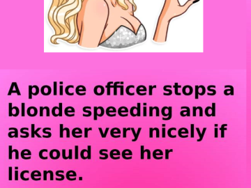 A police officer stops a blonde speeding and asks her very nicely if he could see her license. She replied in a huff, “I wish...