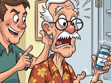 Grandma and Grandpa were visiting their kids overnight. When Grandpa found a bottle of Viagra in his son’s medicine cabinet, he asked about using one...