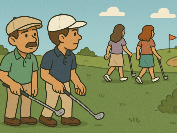 Joe decides to take his boss Phil to play 9 holes on their lunch. While both men are playing excellent they are often held up...