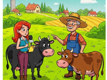 Interviewer: How much milk do these cows give? Farmer: Which one? The Black one or the brown one? Interviewer: Brown one. Farmer: A couple of...