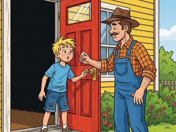 A southern farmer got in his pickup and drove several miles to a neighboring farm and knocked on the farmhouse door. A young boy, about...
