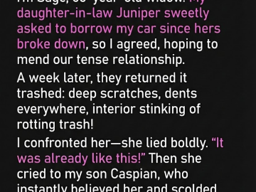 I figured lending my car to my daughter-in-law might help ease the tension between us. Instead, she returned it scratched up and disgusting, then lied...