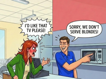 A blonde walks into an appliance store, approaches the man behind the counter, and says “I’d like that TV please.” The cashier replies “Sorry, we...