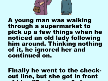 A young man was walking through a supermarket to pick up a few things when he noticed an old lady following him around. Thinking nothing...