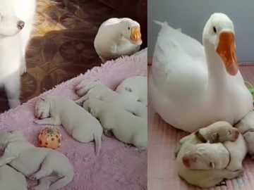From the moment the sweet Samoyed’s owner brought home a tiny yellow gosling, she had no idea that one day her beloved dog and the...
