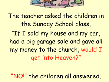 The teacher asked the children in the Sunday School class, “If I sold my house and my car, had a big garage sale and gave...