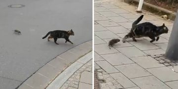 Stray Cat Paws At Woman’s Door And Asks To Be Let Inside To Avoid Cold Weather