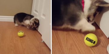 This adorable corgi meet his first tennis ball. Nothing could be cuter.