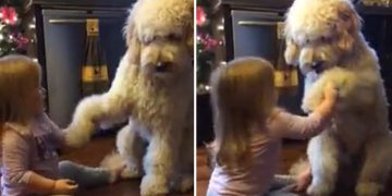 Parents Capture Toddler Teaching Giant Poodle To Shake.