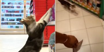 A ‘beggar cat’ tricks shoppers to score 10 meals a day.