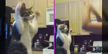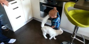 Protective Cat Keeps This Toddler From Burning Himself On The Oven