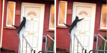 Amazing video shows polite cat knocking on owner’s door to be let inside