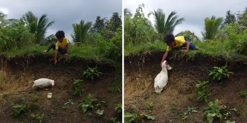 A determined duck retrieved a boy’s flip-flop and handed it back to him.