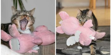 Cat Takes His Favorite Stuffed Animal With Him Everywhere