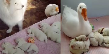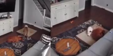 Camera Catches Dog Bringing His Bed To His Sick Brother To Make Him Feel Better