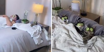 Video Of Cats Relaxing And Enjoying Spa Day With Its Owner.