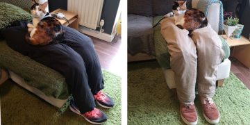 Couple Tricks Their Clingy Cat By Making Fake Lap For Her!