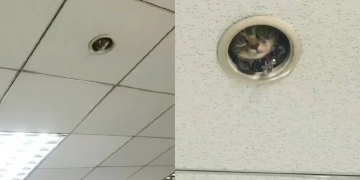 Office workers discover a sneaky “surveillance cat” spying on them.