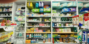 can spot the sneaky cat hiding in in the pharmacy?