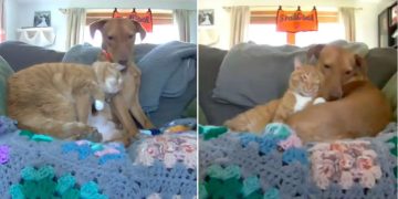 Camera Catches Cat Comforting Anxious Dog While His Owner Is Away