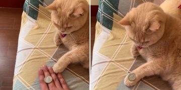 Watch the intelligent feline do a coin magic trick.
