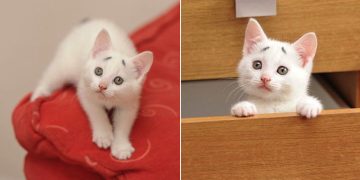 An Adorable White Kitten Born With a Set of Questioning Black Eyebrows.