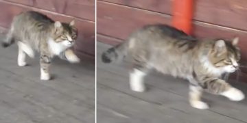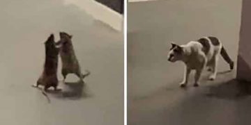 These Cat Helps Her Puppy Friends Get Inside After Playing In The Back Yard.