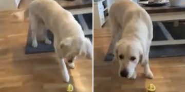 Watch this Golden Retriever react to the taste of a lemon for the first time.