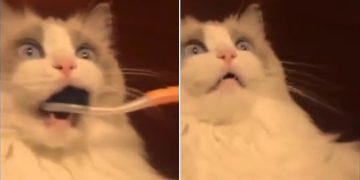 Cat had a truly life-changing moment while brushing its teeth.
