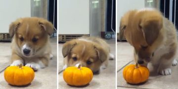 This video of a Corgi’s showdown with a mini pumpkin is too cute.
