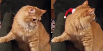 This Cat Hates His Dumb Santa Hat. I Can’t Stop Laughing!