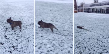 French Bulldog Performs Epic Slide In The Snow.