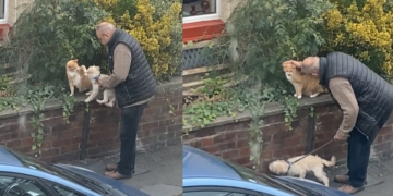 Adorable moment man introduces his puppy to neighborhood cat goes viral