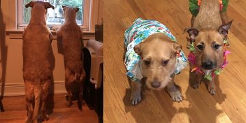 Dog Finds Her Twin On The Street And Begs Her Owner To Bring Him Home