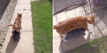This video of a cat and rabbit going for a walk together is too funny.
