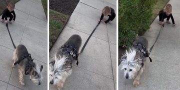 Little girl comforts dog by covering its ears during fireworks. Video melts hearts.
