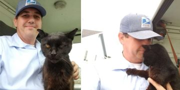 Elderly Cat Falls In Love With Her Mailman