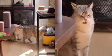 Cat Pulls Face After Sniffing Friend’s Butt. The Most Hilarious Reaction.