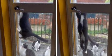 Cheeky Cat Learns To Open The Door And Let His Feline Friends In.