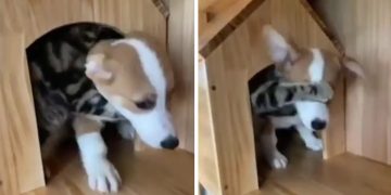 Cat insists the dog returns to the cat house. Who’s the boss?