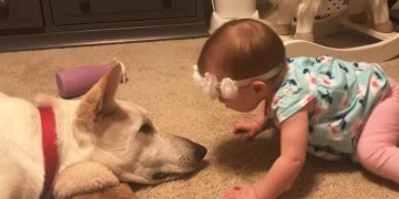 DogsNewsBaby girl invades family dogs personal space to kiss him prompting response dad couldn’t foresee