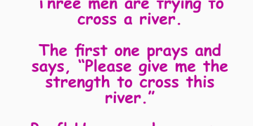 Three men are trying to cross a river.