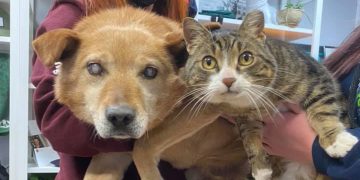 Blind dog and his ‘seeing eye cat’ find a home together after being surrendered to shelter