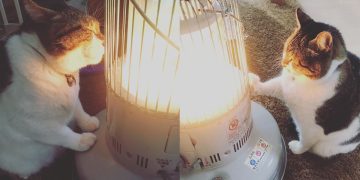 This Adorable Chubby Cat Obsessing with a Heater During Cold Weather