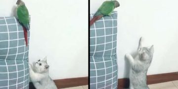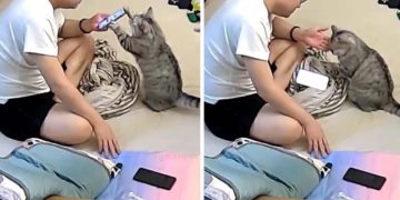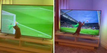 Cat turns into ‘goalkeeper’ while watching a football match.
