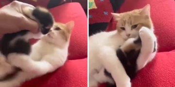 LifeLoyal Orange Cat Refuses to Leave His Mom’s Side While She’s Cutting Onions Even Though He Can’t Stop Crying