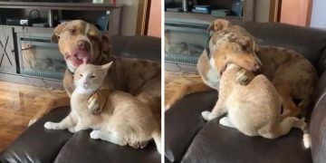 Funny video shows dog being sweet, then trying to eat cat.