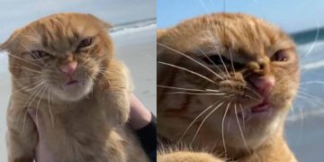 This cat visit the beach for the first time and his reation is very humorous