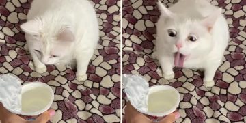 This Adorable Feline’s Reaction on Smelling Sour Cream is Hilarious.