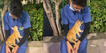 Stray Cat Shows Up To Comfort Exhausted Nurse On His Break